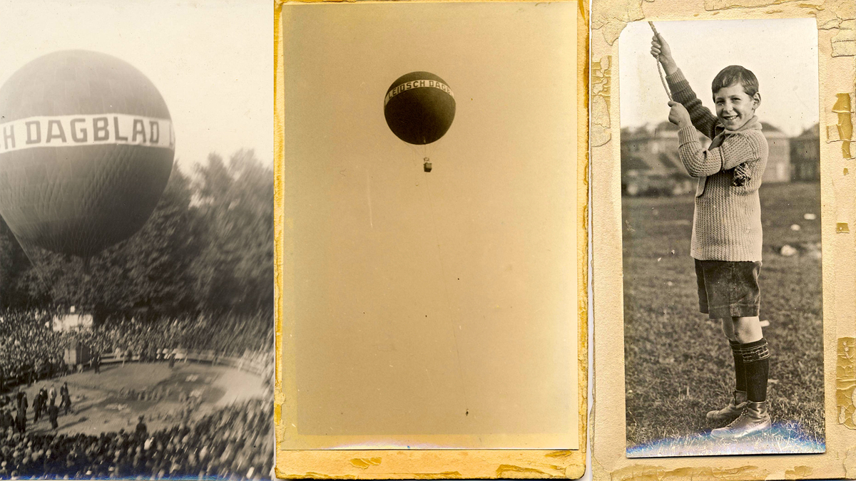 Foto: De ballon voor opstijgen en Ebeltjes ‘onvrijwillige vlucht’, zoals de krant het destijds noemde (oktober 1925).