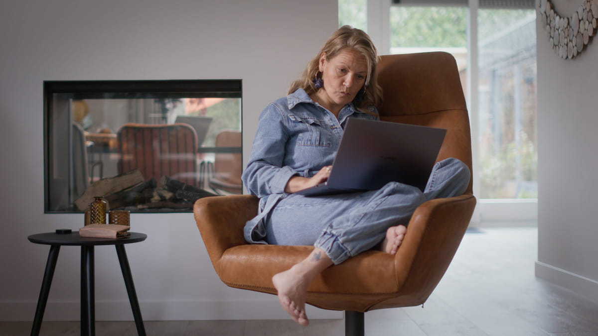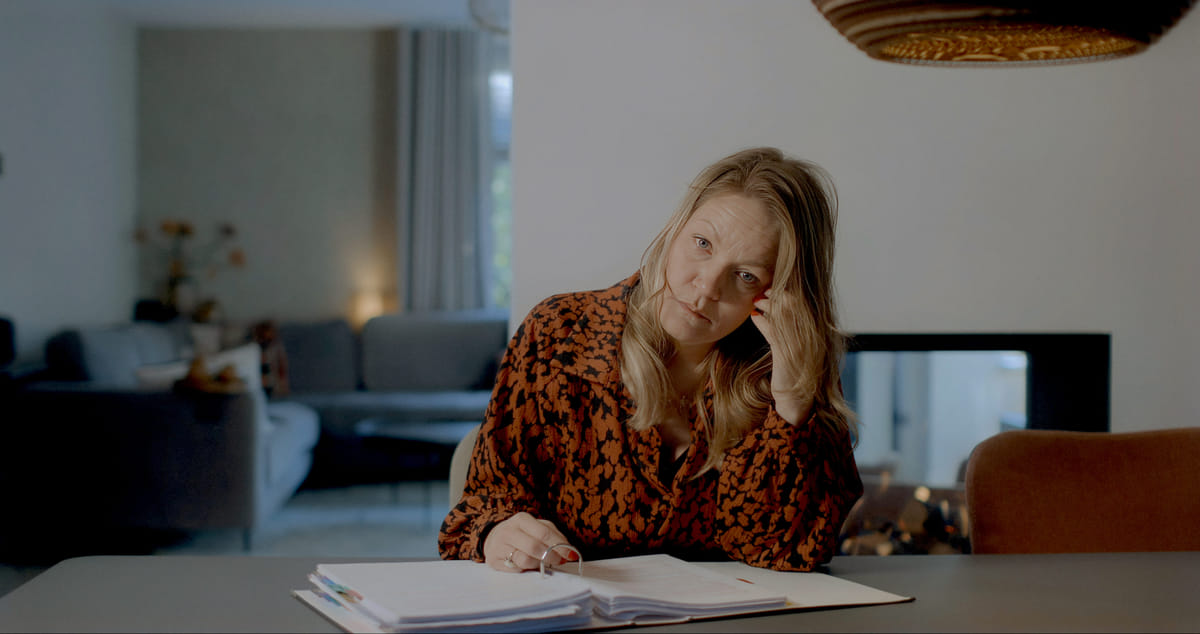 ‘Dat is mijn streven naar optimale waarachtigheid. Die interviewscènes zijn allemaal heel strak en stilistisch gefilmd, maar dat betekent ook dat je dat allemaal klaar moet zetten. En er zitten natuurlijk 24 uren in een dag, dus als Anneloes een telefoontje krijgt of als haar iets te binnen schiet, zou ik die gemoedstoestanden nooit op beeld krijgen als we voor het perfecte shot zouden gaan. Ik heb haar daarom aangemoedigd om op dat soort momenten zelf de camera te pakken, om ons een idee te geven van wat ze precies ervaart.’