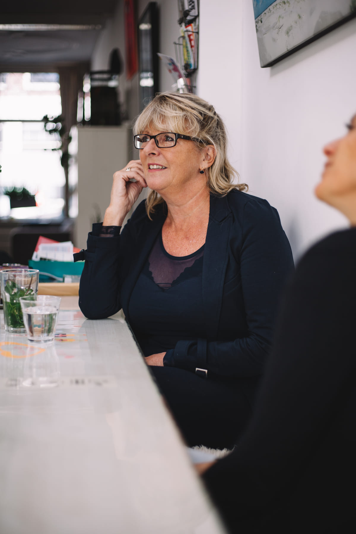 Inmiddels is de vertoning vier jaar geleden, maar de eerste opnames zijn tien jaar oud. ‘Als je het vergelijkt met die tijd zijn mijn zicht en gehoor wel echt minder geworden. Ik merk dat in de dagelijkse dingen en door periodieke onderzoeken.’ Ter illustratie: als Machteld naar mij kijkt aan de overkant van de tafel, ongeveer één meter verderop, ziet ze de onderkant van mijn gezicht. Door heen en weer te kijken, creëert ze een volledig beeld van mijn gezicht in haar hoofd. Hoe gaat ze om met de progressie van haar handicap? ‘Ten tijde van het filmproces was ik zoekende naar wat ik nog kon en wat er van me over zou blijven. Ik voelde mij unhappy. Je ziet dat ik denk dat ‘dit niet alles kan zijn’. Dat heb ik nu minder. Ik leef nog steeds heel erg met de dag en ik kan de toekomst wat beter overzien. Ik ben nu natuurlijk ook de veertig gepasseerd, dat helpt ook!’