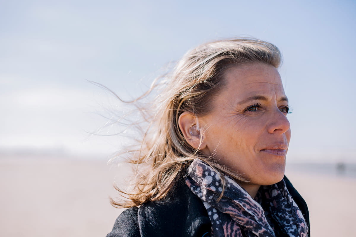 Op weg naar zee vertelt Machteld op haar beurt honderduit over de pelgrimstocht die ze met Anders Bekeken onlangs naar Santiago di Compostella liep. ‘Samen met andere mensen met een visuele beperking praatten we tijdens deze tocht over onze levens en de dingen waar we moeite mee hebben. Ik heb enorm veel gelachen met die mensen en voelde mij heel goed: ik besefte mij weer dat ik naast mijn Usher ook gewoon een heel leuk mens ben.’ Hetty vraagt of ze tussendoor goed konden ontspannen. Machteld antwoordt lachend dat ze met groepen op slaapzalen lagen en dat dat niet bepaald luxe was. ‘Helaas snurkte een van mijn medereizigers zo hard dat ik er zelfs zonder gehoorapparaten nog wakker van lag. Dat is dan wel weer flink balen!’