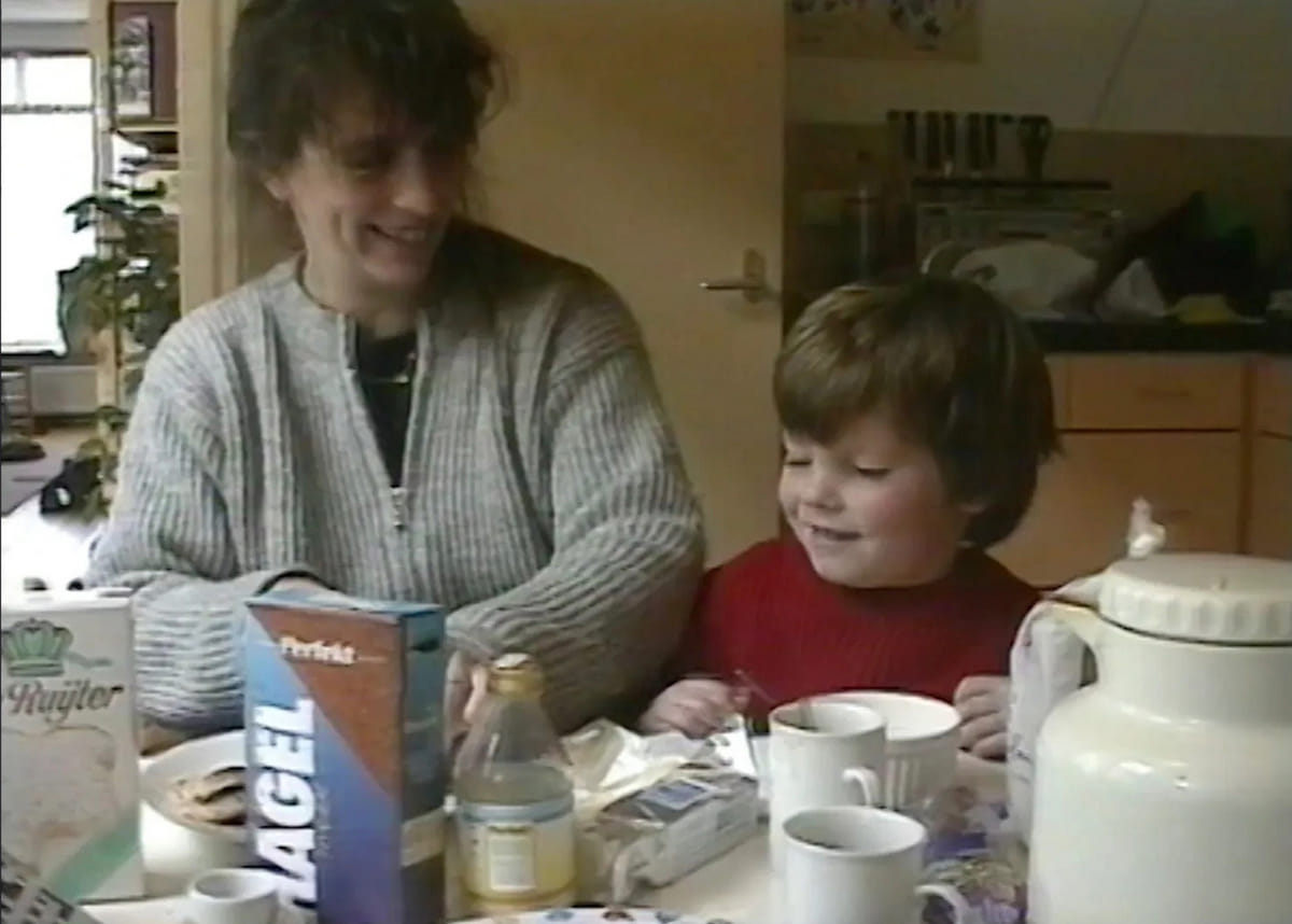 ‘Nee, niet bewust. Dat ik die moeder-blikken ging herkennen, was tijdens de beeldresearch. Ik zette de stereotype moederbeelden die ik had gevonden bij elkaar en zag toen plotseling hoe vaak moeders naar hun kinderen kijken. In de montage hebben we die blik als rode draad gebruikt. En diezelfde blik vond ik vervolgens ook bij mijn eigen moeder, in het beeld aan de ontbijttafel. Dat was voor mij hét moment waarbij ik iets voelde. In die blik zat alles waar ik naar zocht.’