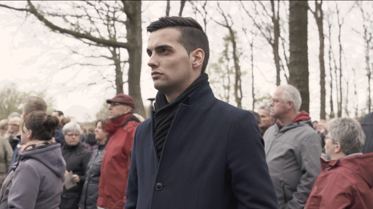 ‘Enkel kijken in de verzamelkamer van Robbert is helaas niet zo spannend op beeld. Zijn fascinatie voor deze materialen begon toen hij jong was, dus was het een logische stap om hem te filmen tijdens een bezoek aan onze oude basisschool waar hij een gastles gaf. Hij kwam naar de school toe in een jeep uit de oorlog. Heel indrukwekkend natuurlijk! De opnames hiervan waren geweldig. Doordat niet alle kinderen op beeld mochten, zie je hier helaas niet veel van terug in de film.’ Behalve in de basisschool, filmde Nadia ook met cameraman Daan Huttinga tijdens de dodenherdenking in Westerbork. ‘Daar mag je gewoon filmen, maar het voelt toch beladen om daar met je camera te staan. Daan wist het heel subtiel vast te leggen zonder de sfeer te verstoren. Met die beelden zijn zowel hij als ik heel blij.’