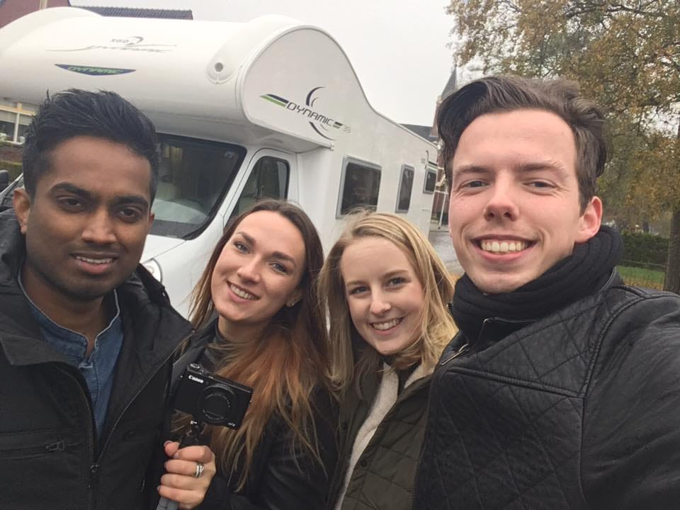 Drie weken lang reisden de documentairemakers door Europa. De route hadden ze van te voren losjes uitgestippeld, maar door tijdsgebrek zijn ze niet in alle landen geweest die in de planning lagen. Toch hebben The Happiness Collectors de nodige landen aangedaan in het korte tijdsbestek dat ze hadden: “Duitsland - Leipzig, was de eerste stop. Toen zijn we doorgegaan naar Praag. Toen naar Wenen en daarna gelijk door naar Venetië en Milaan. Na Lausanne, een stad in Zwitserland maakten we weer rechtsomkeert naar Nederland” vertelt Auke. Het financiële gedeelte had de groep goed op orde, in ruil voor animatie, film en andere diensten werd de camper gesponsord door Frieslandcampers, het eten door supermarkt Poiesz en ook NHL Hogeschool stak een handje toe.
