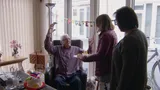 ‘Is hij er slecht aan toe?’ wil interviewer Frans Bromet weten. ‘Nog niet’, antwoordt Marco lachend. Schoondochter Anita vult aan: ‘Hij is achtentachtig en hij is eigenlijk hartstikke goed.’ Bromet: ‘Gaat dat jullie niet heel veel tijd kosten?’ ‘Zwaaien?’ antwoordt Anita gevat. ‘Nee, dat valt wel mee, denken wij.’