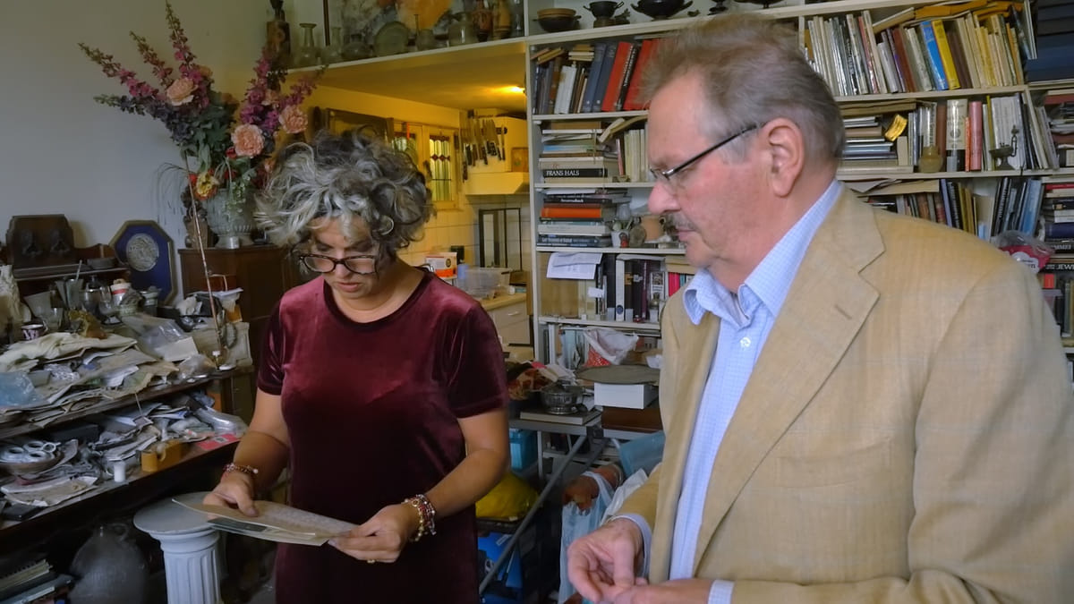 Een vrijstaande villa. Aan de muur hangt kunst. En op planken staat kunst. Overal eigenlijk. En rommel. Ook overal. Een nette vrouw, Vera Funke, baant zich voor de camera van Frans Bromet door de ontzettende rommel. 'Alles wat hier staat zijn dingen waarvan hij houdt, is verzameld met liefde.'