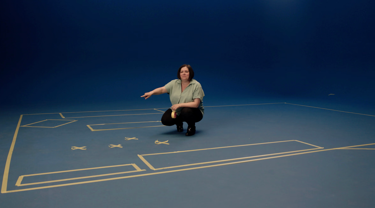 In Blauwdruk reconstrueren de vier hoofdpersonen in een lege ruimte hun ouderlijk huis zoals het eruit zag voordat het een plaats delict werd. De regisseur hoopte dat op die manier jeugdherinneringen bij haar hoofdpersonages zouden loskomen.
