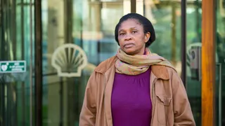 Na protesten van milieuactivisten tegen vervuiling door oliewinning van Shell in Nigeria, werd Esther Kiobels echtgenoot Barinem werd geëxecuteerd.