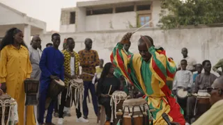 Portret van de Senagalese percussionist Doudou N'Diaye Rose. Peter Gabriel, Youssou N'Dour en de familieleden van N'Diaye Rose delen herinneringen aan de muzikale legende.